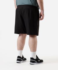 Bermuda masculina confeccionada em tecido plano leve com elasticidade. A peça tem modelagem reta e caimento solto ao corpo. O modelo tem cintura média, cós com elástico embutido e cordão para ajuste. Possui dois bolsos frontais, nervuras contrastantes laterais, estampa de logo localizada e acabamento pespontado nas barras.
