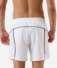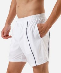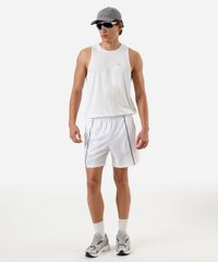 Short esportivo masculino confeccionado em tecido plano de poliamida. A peça tem modelagem reta e caimento solto ao corpo. O modelo tem cintura média, cós com elástico, cordão e forro embutido. Possui dois bolsos frontais e nervuras contrastantes aplicadas.