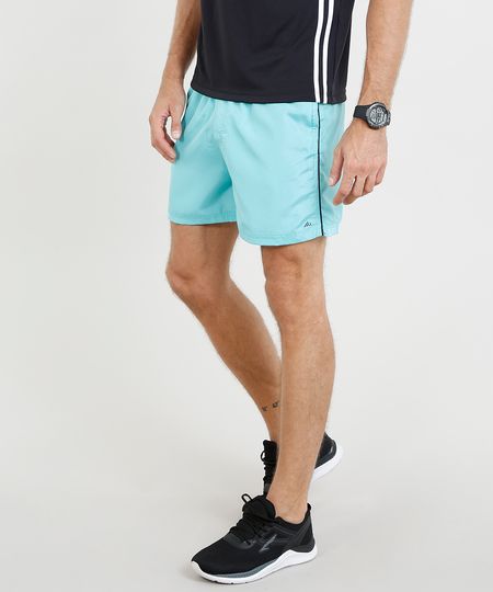 Short masculino confeccionado em tecido plano leve de secagem rápida. O modelo tem dois bolsos embutidos na parte frontal enquanto a parte posterior tem um. O cós tem elástico e cordão de ajuste embutidos.