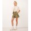 short mom de sarja cintura alta bolso cargo verde