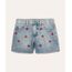 Este short infantil jeans se destaca por seus detalhes cheios de charme: