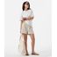 Short feminino confeccionado em tecido plano com estampa listrada. A peça tem modelagem pijama, com construção reta e caimento solto ao corpo. O modelo tem cintura alta, cós com elástico embutido e botões decorativos. Detalhe de acabamento pespontado nas barras.