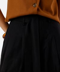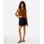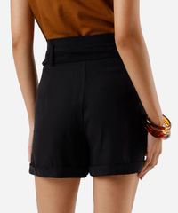 Short feminino confeccionado em tecido plano com viscose. A peça tem a modelagem e construção reta e o caimento é solto ao corpo. O modelo tem cintura alta, cós com passantes para cinto, pregas e fechamento frontal por botão e zíper. Possui dois bolsos na parte frontal e acabamento com dobradura fixa nas barras. Acompanha faixa para amarração.