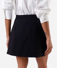 Short saia feminino confeccionado em tecido plano de alfaiataria com viscose e elastano. A peça tem cintura alta, caimento ajustado ao corpo e comprimento curto. Possui cós liso, fechamento discreto por zíper invisível na lateral e acabamento pespontado.