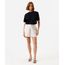 Short saia feminino confeccionado em tecido plano com linho e padronagem. A peça tem modelagem reta e caimento levemente ajustado ao corpo. O modelo tem cintura alta, cós com elástico embutido e fechamento por zíper e botão. Detalhe de acabamento pespontado nas barras.