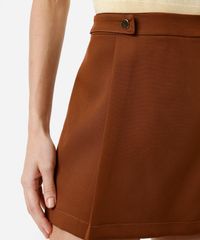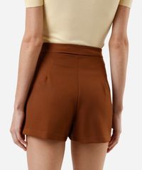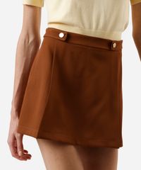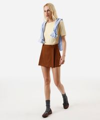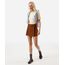 short saia feminino com pregas e botões marrom