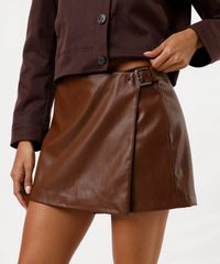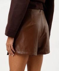 short saia feminino de poliuretano marrom