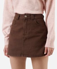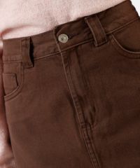 short saia feminino de sarja cintura alta marrom
