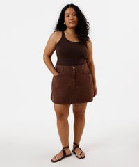 Short saia cargo feminino confeccionado em sarja estruturada. A peça tem modelagem reta e caimento levemente ajustado ao corpo. O modelo tem cintura alta, cós com passantes para cinto e fechamento por zíper e botão. Possui três bolsos frontais e dois aplicados na parte posterior. Detalhe de acabamento com fendas laterais.