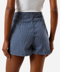 Versátil, este short feminino listrado transita facilmente entre diferentes estilos. Para um look casual de verão, combine-o com uma regata básica e rasteirinhas. Se a ideia é um visual mais arrumado, aposte em uma camisa de manga curta e sandálias de salto bloco. A peça também fica ótima com tênis brancos para uma proposta mais urbana e despojada.