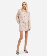 • Confeccionado em sarja estruturada 100% algodão com estampa listrada atemporal.