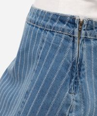 short saia feminino jeans com fenda listrado azul