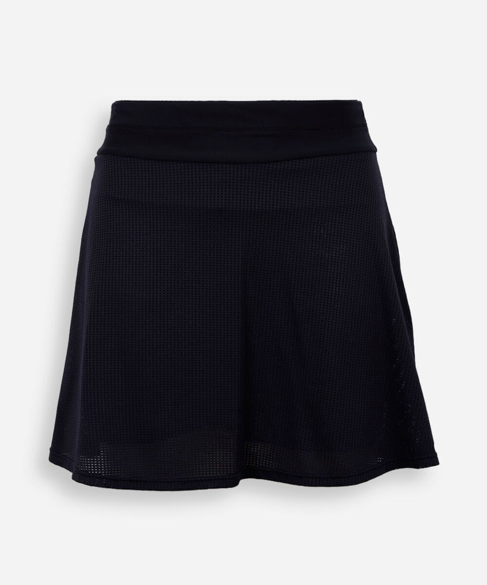 Short saia juvenil confeccionado em malha texturizada com micro furos. A peça tem modelagem reta e caimento levemente ajustado ao corpo. O modelo tem cintura média e cós com elástico embutido. Possui bolso aplicado e acabamento pespontado nas barras.