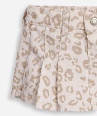 Este short saia infantil é a escolha perfeita para vestir as pequenas com muito estilo e conforto. Unindo a delicadeza de uma saia com a praticidade de um short, a peça é ideal para as mais diversas brincadeiras e passeios. Confeccionado em sarja de algodão, oferece um toque macio à pele e liberdade de movimento, enquanto a estampa de animal print adiciona um toque moderno e divertido ao visual.
