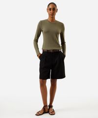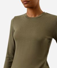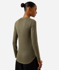 • Decote redondo e mangas longas, um design clássico e atemporal.