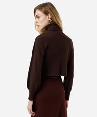 suéter cropped feminino de tricot manga bufante canelado marrom