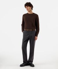 suéter de tricot canelado marrom