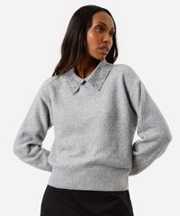 suéter de tricot com pérolas cinza