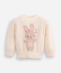 suéter de tricot jacquard infantil coelhinho off white