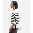Para um visual descontraído, combine este suéter listrado com uma calça jeans de modelagem reta e tênis. Se a ocasião pede um toque mais elegante, aposte em uma calça de alfaiataria ou shorts de tecido plano e sapatos como mocassins ou mules. É uma peça versátil que transita facilmente entre o trabalho e o lazer, permitindo criar looks modernos e cheios de personalidade.