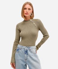 • Detalhe de botões decorativos no ombro, adicionando um ponto de elegância à peça.