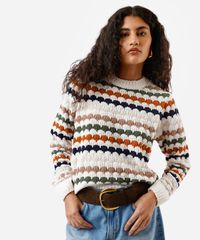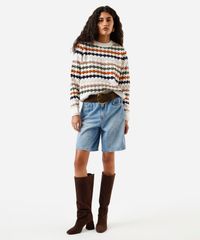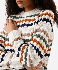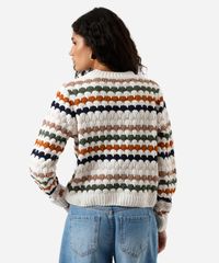 suéter feminino de tricot chenille listrado off white