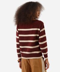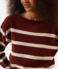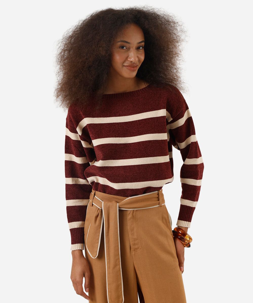 suéter feminino de tricot chenille listrado vinho