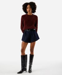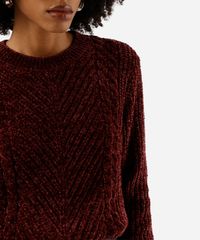 suéter feminino de tricot chenille texturizado vinho