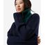suéter feminino de tricot com recorte e zíper gola alta azul