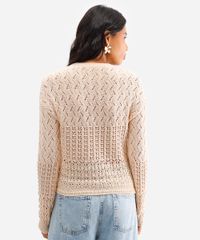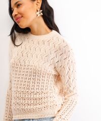 Renove seus looks de meia-estação com este suéter feminino de tricô. Com um design delicado e trama aberta, esta peça une conforto e um toque artesanal ao visual. Seu caimento levemente solto garante liberdade de movimentos, tornando-o um item versátil para diversas ocasiões.