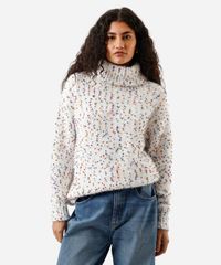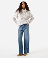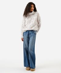 Suéter feminino confeccionado em tricot texturizado. A peça tem a modelagem e construção reta e o caimento é confortavelmente solto ao corpo. O modelo tem gola alta e mangas longas. Detalhe de acabamento canelado nos punhos e na barra.