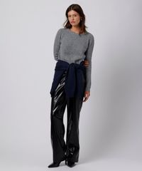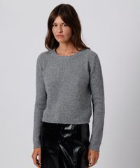 suéter feminino de tricot gola redonda mindset cinza