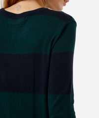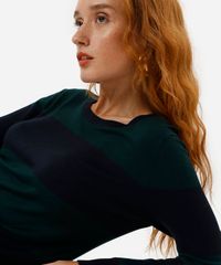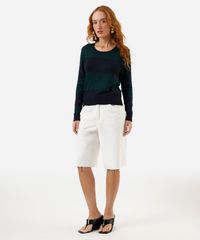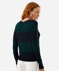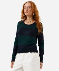 Suéter feminino confeccionado em tricot leve de viscose com padronagem listrada. A peça possui gola careca, mangas longas, caimento levemente solto e reto ao corpo e acabamento canelado. Composição: 80% viscose 20% poliamida Modelo veste: P Medidas da modelo - Altura: 1,73m Busto: 86cm Cintura: 70cm Quadril: 101cm. Instruções de lavagem: - Lavar à mão - Proibido o alvejamento - Não secar em tambor - Secagem em varal por gotejamento - Não passar - Não lavar à seco - Limpeza à úmido processo normal