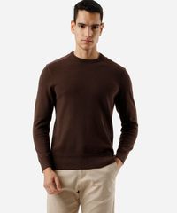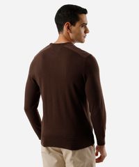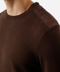 suéter masculino de tricot com recorte de suede marrom