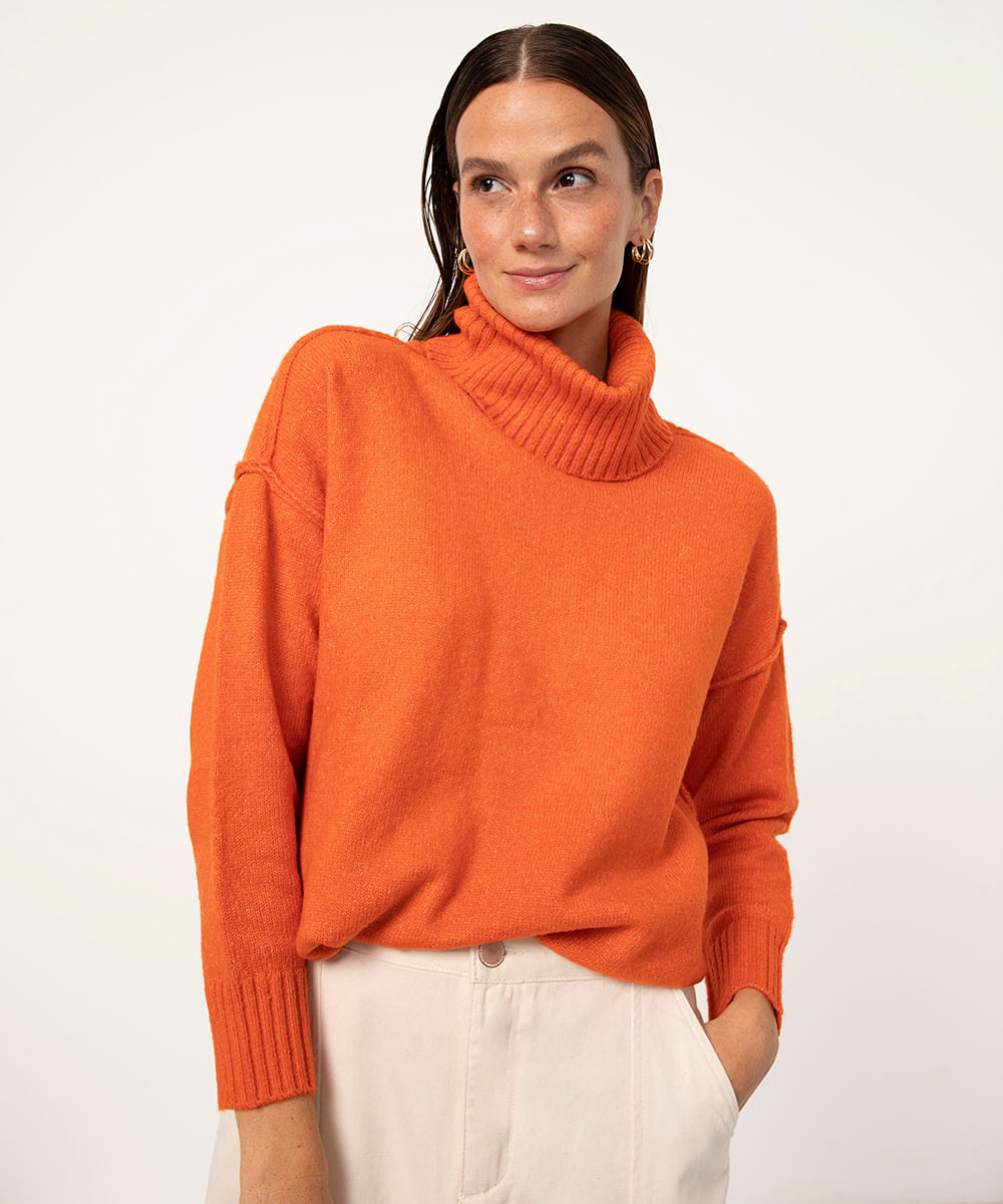 suéter oversized de tricô gola alta laranja