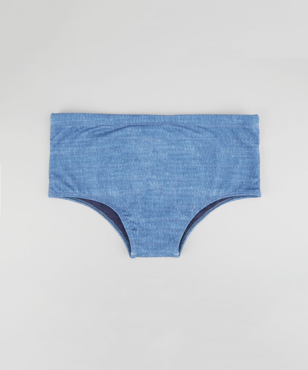 Essa sunga se destaca pela estampa diferenciada. Tem modelagem tradicional, com as laterais largas. O cós tem elástico embutido e cordão para ajuste. A parte interna tem forro e o acabamento é simples.
