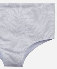 Sunga masculina confeccionada em tecido sintético com toque macio e proteção UV. A peça tem modelagem tradicional com laterais largas e cobertura posterior, proporcionando um ajuste seguro e confortável ao corpo, cós com elástico e cordão interno embutido para um ajuste e forro interno em malha e estampa de folhagem.
