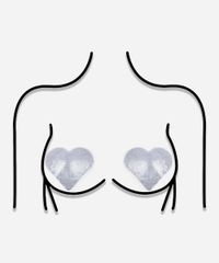 Protetor para mamilos com formato de coração com glitter na cor prateada. O modelo é lavável e reutilizável, proporciona conforto durante o uso por conter cola de silicone que auxilia facilitando ao colocar. Ótima opção para compor suas fantasias de carnaval.