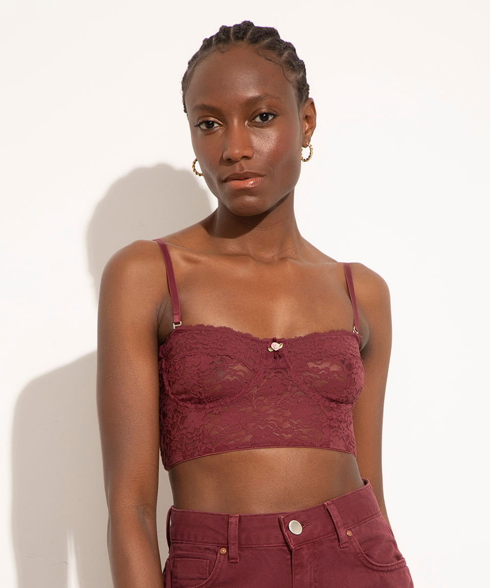 Este top de renda é a peça ideal para quem busca unir o universo da lingerie com as tendências da moda. Com um design que valoriza a sofisticação, ele foi pensado para compor looks cheios de personalidade e atitude. Confeccionado em renda delicada, o modelo oferece um toque suave e um caimento estruturado, garantindo conforto e estilo em uma única peça.