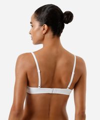 Sutiã feminino confeccionado em malha de poliamida. O modelo é meia taça, com caimento ajustado, sem bojos e com aros para melhor sustentação. Possui alças finas ajustáveis e fechamento por colchetes com níveis de ajustes. Composição 90% poliamida 10% elastano Modelo veste: P/38 Medidas da modelo: Altura: 1,80m Busto 79cm Cintura: 60cm Quadril: 89cm Instruções de lavagem: - Lavagem manual - Não alvejar - Não secar em secadora - Secar na vertical - Não passar - Não lavar à seco