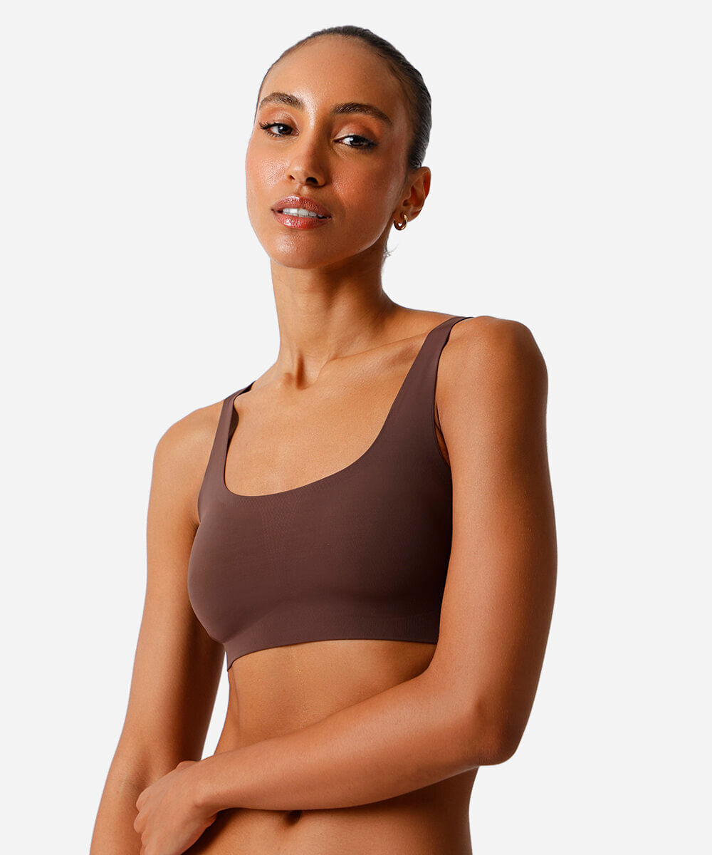sutiã top feminino com bojo de poliamida marrom