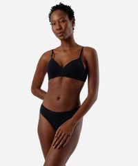 Sutiã feminino confeccionado em malha de algodão. O modelo é triângulo, com caimento ajustado, bojo fixo para melhor sustentação. Possui alças finas ajustáveis e fechamento por colchetes com níveis de ajuste. Composição 95% algodão, 5% elastano Modelo veste: P/38 Medidas da modelo: Altura: 1,80m Busto 79cm Cintura: 60cm Quadril: 89cm Instruções de lavagem: - Lavagem manual - Não alvejar - Não secar em secadora - Secar na vertical - Não passar - Não lavar à seco