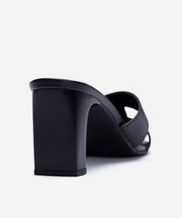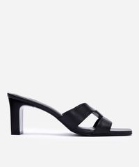 tamanco bico quadrado com recorte salto grosso oneself preto
