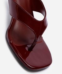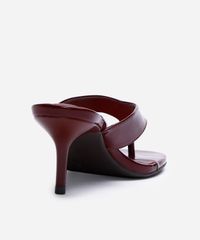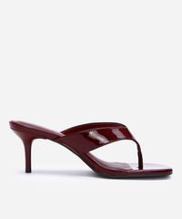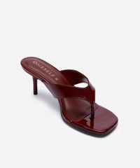 Tamanco feminino desenvolvida em material sintético resistente. O modelo tem bico quadrado, cabedal com tiras largas e suporte para encaixar os dedos. Possui salto fino, médio e sola texturizada.