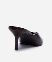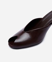 tamanco mule peep toe salto fino marrom