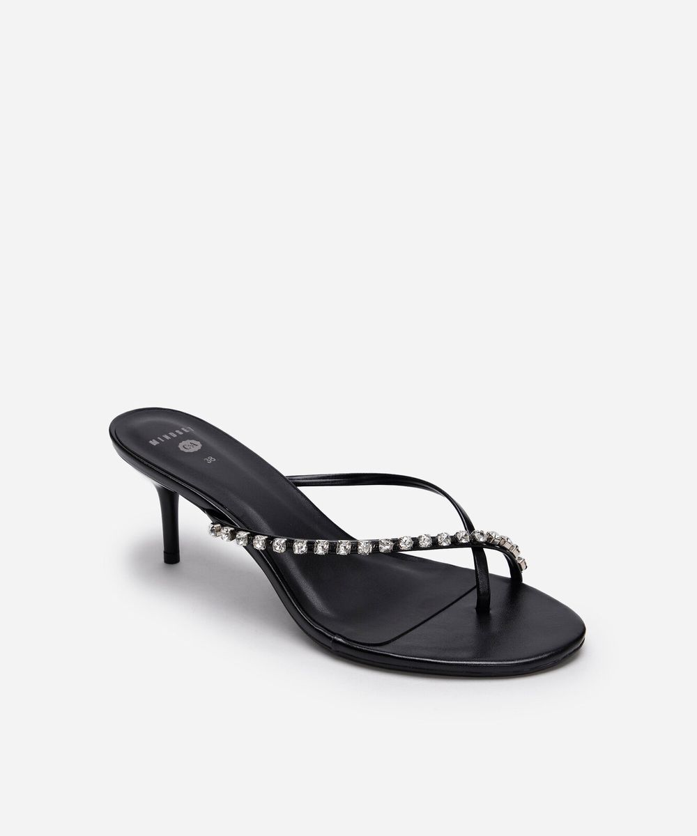 tamanco salto fino com brilhos mindset preto