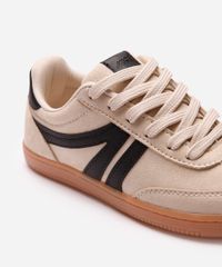 • Cabedal confeccionado em material sintético com toque acamurçado e recortes em cor contrastante, criando um visual bicolor moderno.
