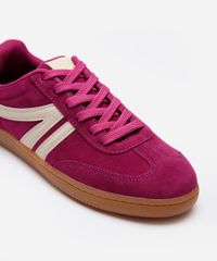 • Cabedal confeccionado em material sintético com toque acamurçado e recortes em cor contrastante, criando um visual bicolor moderno.