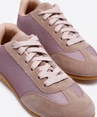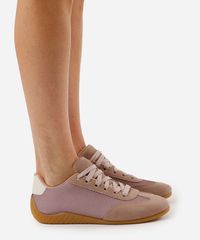• Cabedal com recortes que combinam malha respirável (mesh) e material com toque de camurça.