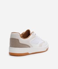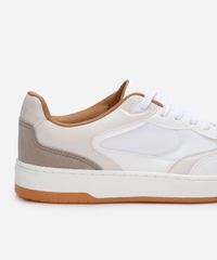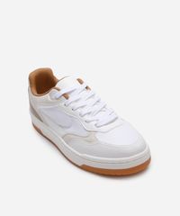 Tênis confeccionado em material sintético resistente. O modelo tem bico redondo, cabedal com recortes contrastantes, aplicação de tela texturizada e ajuste por cadarço. Possui forro e leve enchimento na parte interna. Possui palmilha macia com inscrição de marca e a sola é texturizada e auxilia no caminhar.